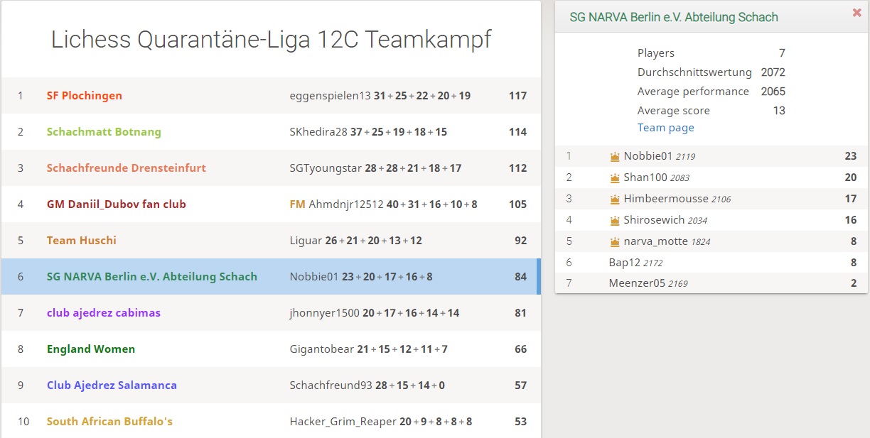 Platz 6! Zumindest den Abwärtstrend gestoppt. Nobbie nach Pause wieder dabei und gleich bester Mann. Ich sogar in der Wertung, bei nur halber Stunde gespielt.