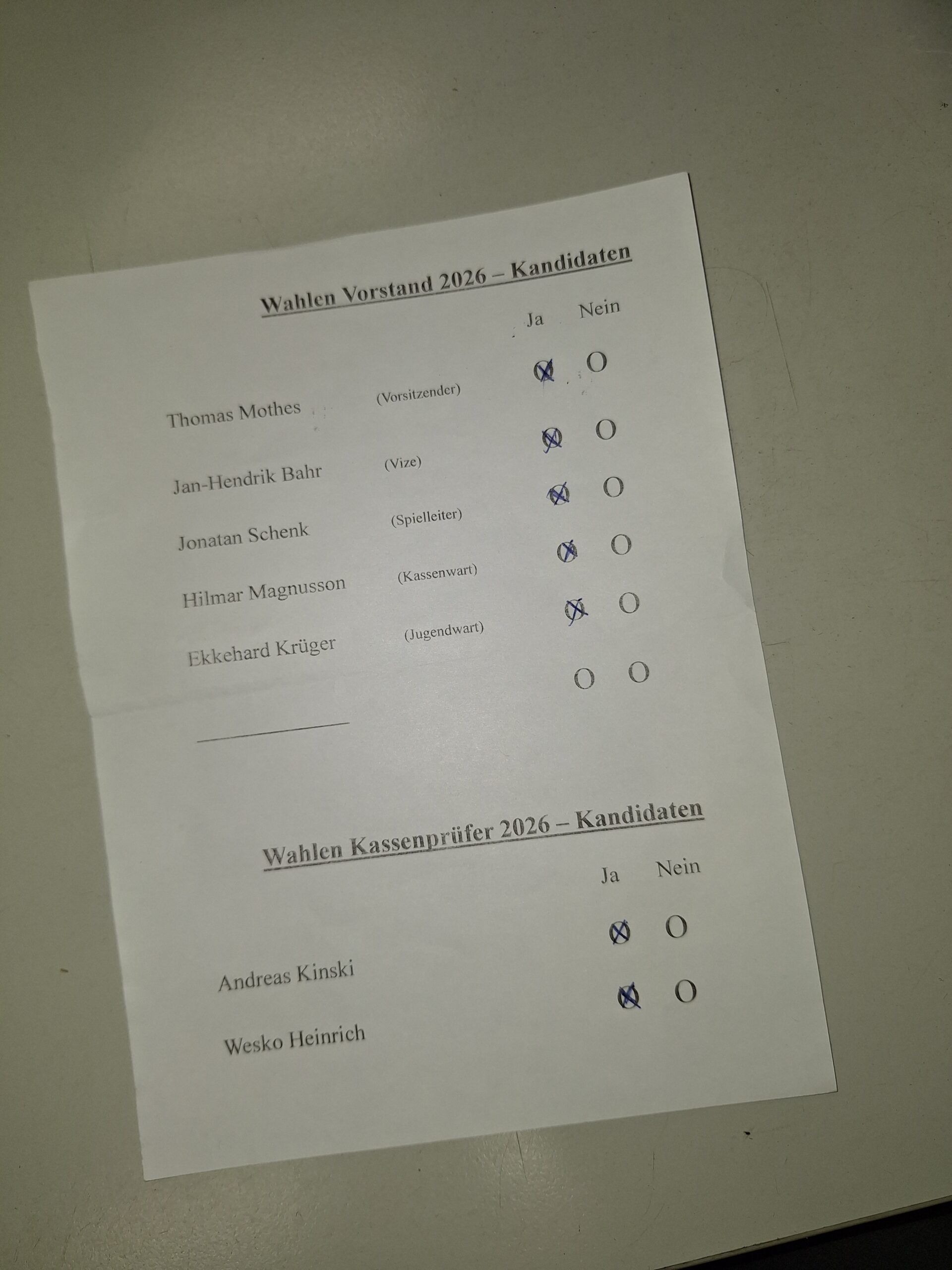 Unverändert bleibt Thomas Mothes Vorsitzender, Jonatan Schenk Spielleiter und Ekkehard Krüger Jugendwart. Unser Vorsitzender geht damit in die Jahre 19 und 20 seiner Amtszeit und hat angekündigt, dass es seine letzten beiden sein sollen!